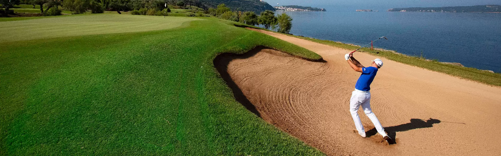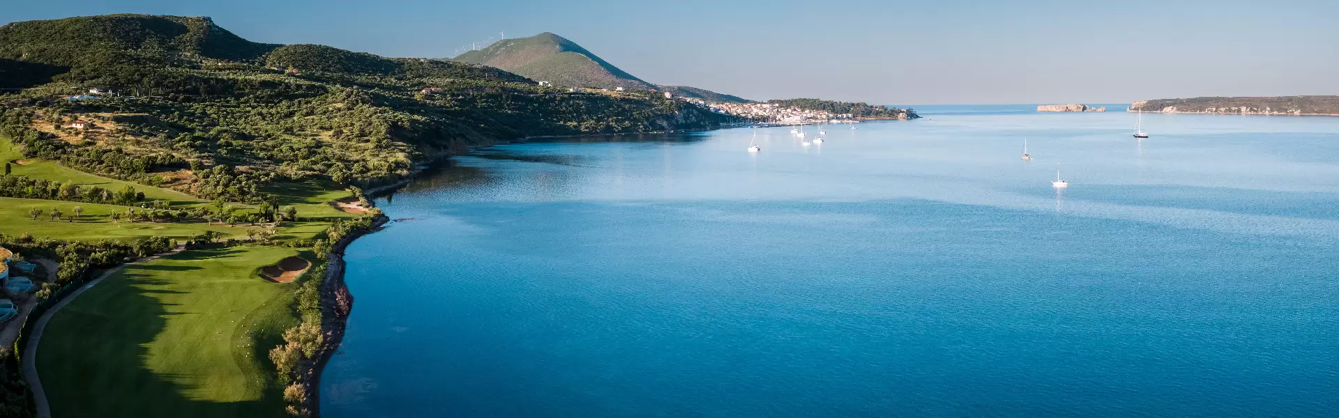 Golfers experience four different Seaside greens framed by a scenic backdrop of the tranquil waters of the Bay of Navarino. The bay’s natural beauty is showcased on hole #4, a short and strategic par 4 directly fronting the bay with the town of Pylos visible in the background. This challenging hole offers tremendous visual appeal.