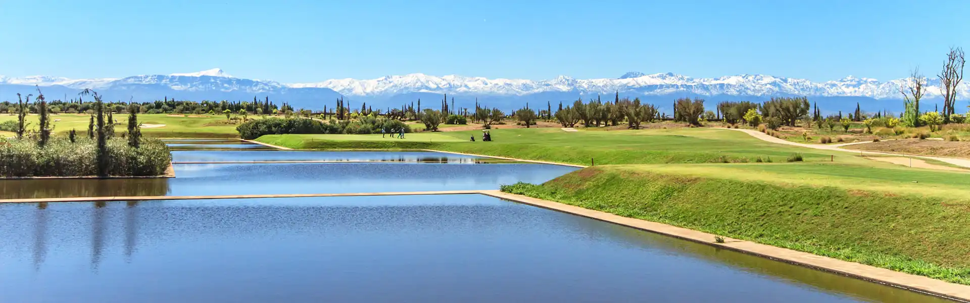 Situated further out of Marrakech, this course has amazing views of the High Atlas Mountains, which are often snow covered providing a spectacular backdrop to your golfing experience. The key features of the course are cavernous bunkers and angular water hazards. The course was designed by Kyle Philips and is 6429 metres in length.