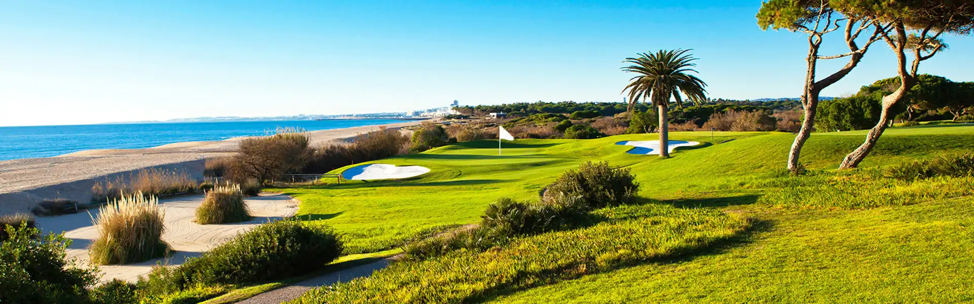 The front nine are located on a slightly hilly land which characterises Vale do Lobo Algarve, surrounded by pine trees with sea view from several holes.