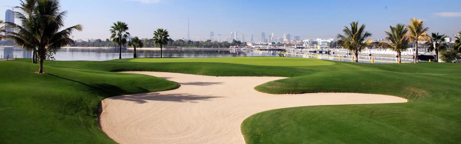 Running along the Marina, The Championship Course at Dubai Creek Golf and Yacht Club offers golfers stunning views throughout the entirety of the course. Dubai Creek has a beautiful tropic air to it with the addition of palm trees and coconut trees all around the 6,370 meter course. The creek and artificial lakes add to the level of difficulty of the course. In 2005 Dubai Creek Golf Course was named in Golf World’s Top 100 Golf Courses in the World.